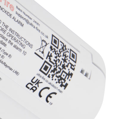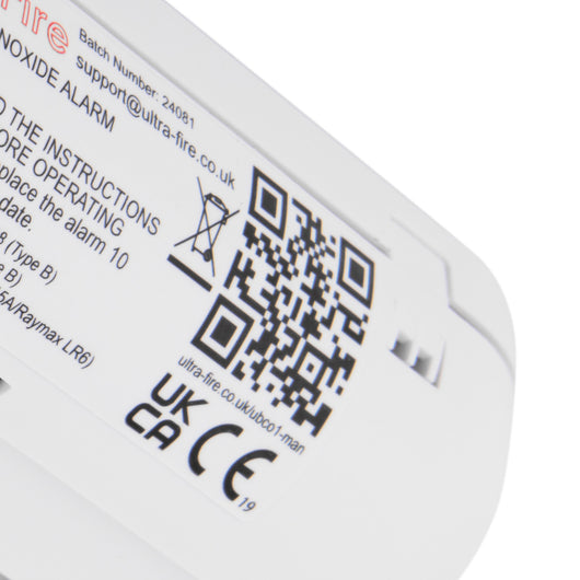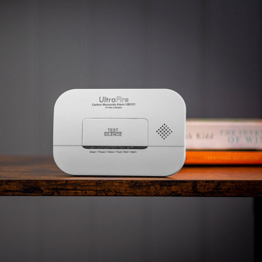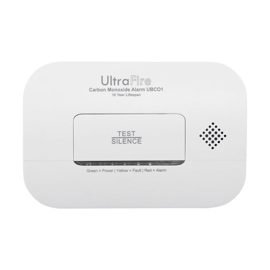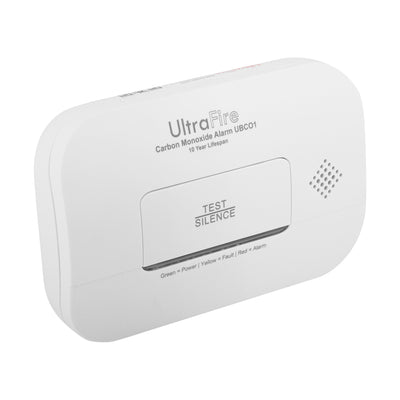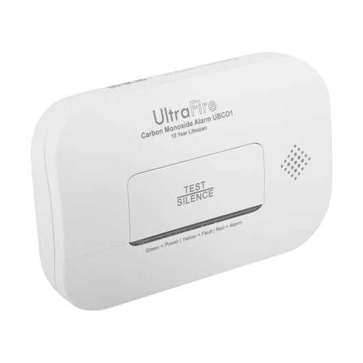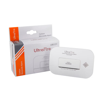 The UltraFire UBCO1 carbon monoxide alarm featuring a 10-year sensor life warns occupants of the presence of dangerous levels of CO. Suitable for installation in bedrooms, living rooms, kitchens, and where any fuel-burning appliance maybe located, such as a fireplace, gas cooker, or boiler. The UBCO1 also features a reduced volume test function, low battery and end-of-life audible warnings, and a 10-year manufacturer's warranty for peace of mind.