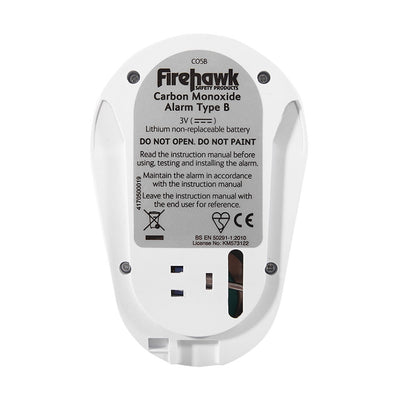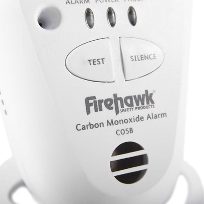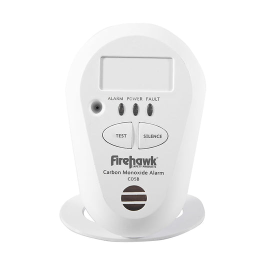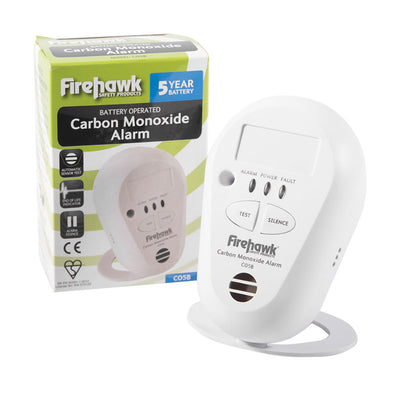 The Firehawk CO5B is an alarm designed to detect deadly carbon monoxide gas from incomplete combustion in fuel-burning appliances and fireplaces. This alarm features a sealed 5 year battery that never needs replacing, a versatile mounting system that supports free-standing and wall-fixing installation, and approval for use in travel and boats as well as the home.