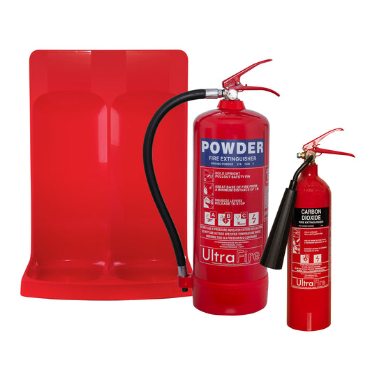 6kg Powder, 2kg CO2 Fire Extinguisher & Double Stand Special Offer