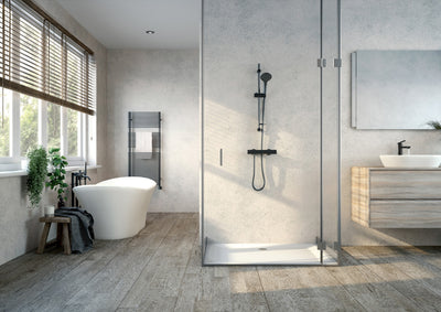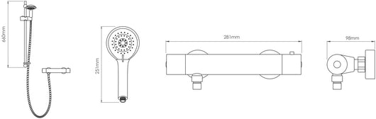 An added value round bar valve shower that's available in a stylish; durable matt black finish for a distinctive look in the modern bathroom. Temperature safe features include 'safe t touch' surface technology and an overide button if a hotter shower is required. The adjustable handset delivers 3 alternative spay patterns for a genuine choice of shower experience. Suitable to install with all UK domestic water systems; the shower pack includes easy fix brackets for both valve and rail. 5 year guarantee as standard (T&C's apply)
