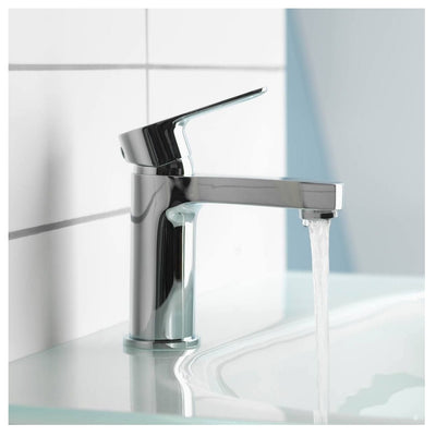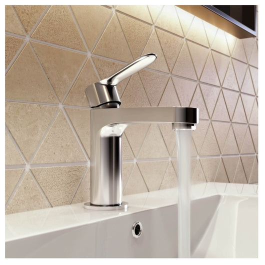 The large Central Basin Mixer Tap offers a compact; high-performance basin tap option in a stylish and contemporary design. The single soft rounded paddle lever allows you to find your desired temperature with ease; and this bathroom sink tap comes complete with an aerator for softer; non-splash flow and an elegant metal click clack plug. Suitable for low- and high-pressure water systems; Aqualisa Central taps feature a solid brass body with durable zinc handles offering a fantastic contemporary look within the bathroom.