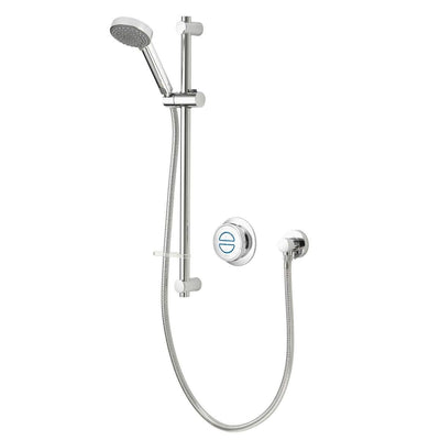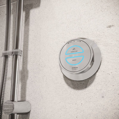Quartz Classic Smart is now fitted with the new and improved SmartValve™ that delivers the most advanced showering systems available in terms of safe, regulated temperature control and eco-friendly water usage. This is an adjustable handset, hose and slide rail combination, connected to a wall mounted water outlet. The familiar push button Quartz control disk sits neatly on the tiled wall surface. Behind it, a single cable easily connects to the intelligent SmartValve™, which can be placed in the most accessible location 7.5 metres away from the shower area. With Wifi connection, showering can be managed on a smart phone using the Aqualisa app or voice control with an online dashboard available showing water usage and indicative costs. Suitable for approved high pressure water systems only.