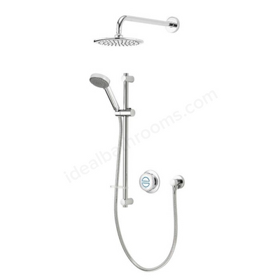 Quartz Classic Smart is now fitted with the new and improved SmartValve™ with an integrated diverter that delivers the most advanced showering systems available in terms of safe regulated temperature control and eco-friendly water usage. This is a flexible dual outlet system combining a wall-fixed overhead shower with an adjustable height handset and rail ideal for different types of showering. Behind the familiar push button Quartz control disk a single cable easily connects to the intelligent SmartValve™ which can be placed in the most accessible location 7.5 metres away from the shower area. With Wifi connection showering can be managed on a smart phone using the Aqualisa app or voice control with an online dashboard available showing water usage and indicative costs. Suitable for approved low pressure water systems only.