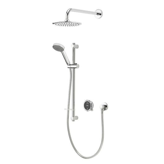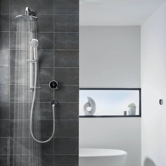 Quartz Touch Smart is now fitted with the new and improved SmartValve™ with an integrated diverter that delivers the most personalised showering systems available in terms of performance selection, safe, regulated temperature control and eco-friendly water usage. This is a flexible dual outlet system combining a wall-fixed overhead shower with an adjustable height handset and rail, ideal for different types of showering. Behind the distinctive, monochrome control, a single cable easily connects to the intelligent SmartValve™, which can be placed in the most accessible location 7.5 metres away from the shower area. With Wifi connection, the selected showering profile (pre-set or individually created) can be managed on a smart phone using the Aqualisa app or voice control with an online dashboard available showing water usage and indicative costs. Suitable for approved high pressure water systems only.