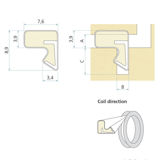 - C Minimum groove depth: 6,0 mm.