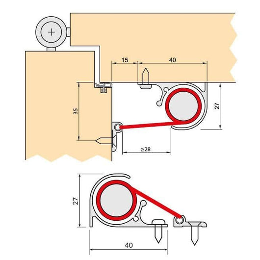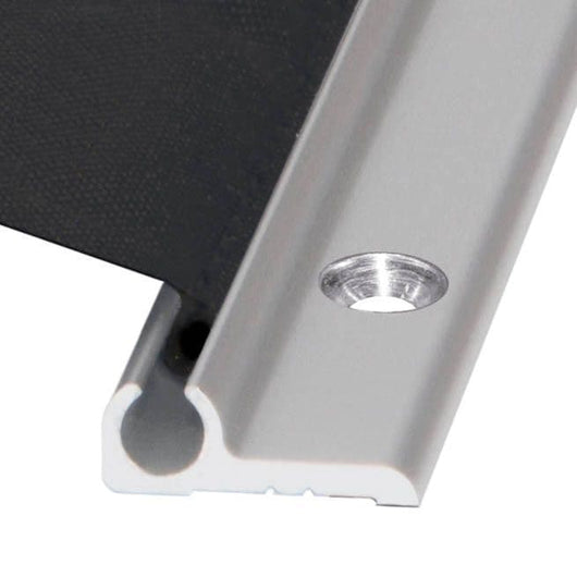 - Concealed housing fastening screws and visible fabric profile screws.