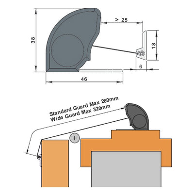- 260mm suitable for 180 degree opening - extra wide 320mm available for wider sections.