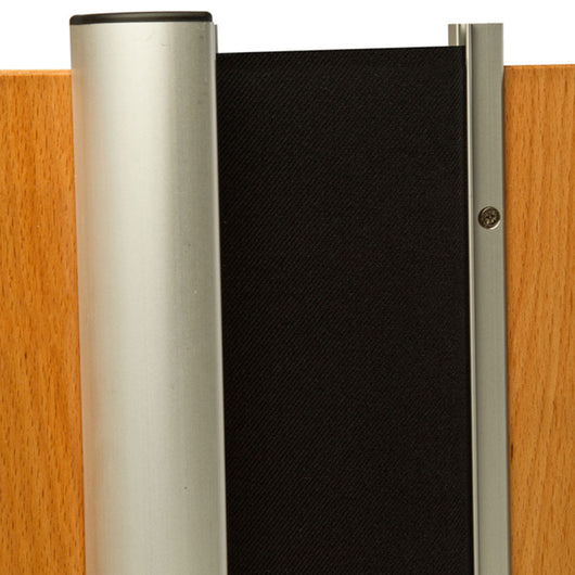 Astro Finger Protecta uses a high quality housing and a resilient fabric blind in a 'roller' type mechanism to prevent finger trapping accidents in doors. The blind covers the hinge gap when the door is opened and retracts into the robust aluminium housing when the door is closed. The retractor mechanism makes for a tidy and robust guard which is not exposed to potential damage in the way that concertina style guards are - even when in the closed position.