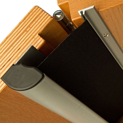 Finger Protecta uses a high quality housing and a resilient fabric blind in a roller type mechanism to prevent finger trapping accidents in doors. The blind covers the hinge gap when the door is opened and retracts into the robust aluminium housing when the door is closed. The retractor mechanism makes for a tidy and robust guard which is not exposed to potential damage in the way that concertina style guards are - even when in the closed position.