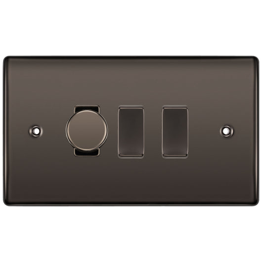 BG Black Nickel 3 Gang Switch 1x Trailing Edge LED Dimmer 2x 2 Way Custom Grid