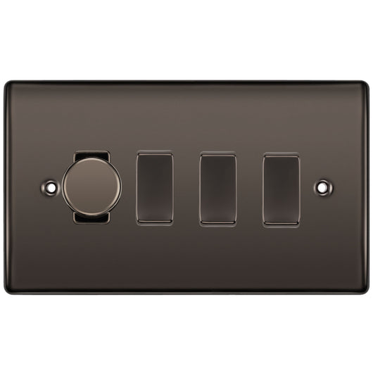 BG Black Nickel 4 Gang Switch 1x Trailing Edge LED Dimmer 3x 2 Way Custom Grid