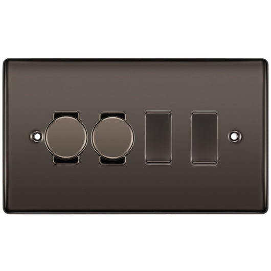 BG Black Nickel 4 Gang Light Switch 2x Trailing Edge LED Dimmer 2x 2 Way Custom Switch