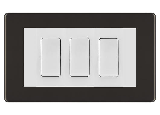 BG Black Nickel Screwless 3 Gang Intermediate Light Switch Custom Grid - White Insert
