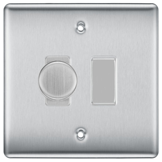 BG Brushed Steel 2 Gang Switch 1x Trailing Edge LED Dimmer 1x 2 Way Custom Grid
