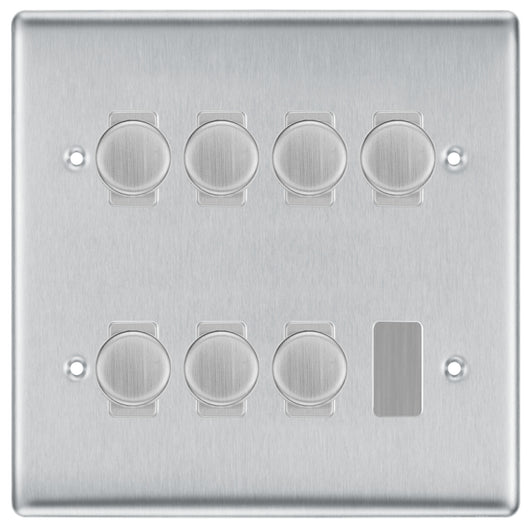 BG Brushed Steel 7 Gang 2 Way Trailing Edge Dimmer LED Compatible Custom Grid