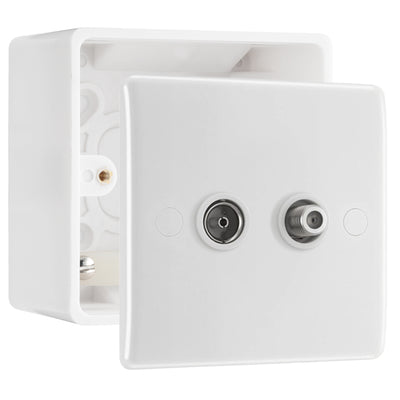 BG Electrical Double Satellite TV Socket Outlet White & 50mm Pattress Back Box