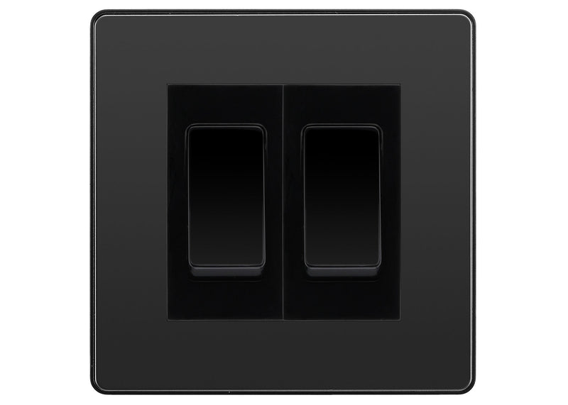 Upgrade your lighting setup with this premium BG Evolve Black Chrome 2-gang light switch assembly — the perfect blend of performance and style.