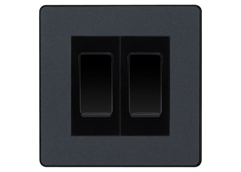 BG Electrical Evolve Matt Grey 2-Gang Light Switch 1x 2-Way + 1x Intermediate – Black Inserts