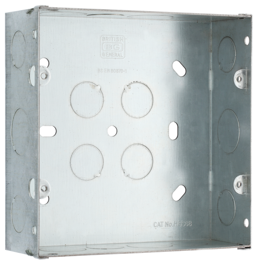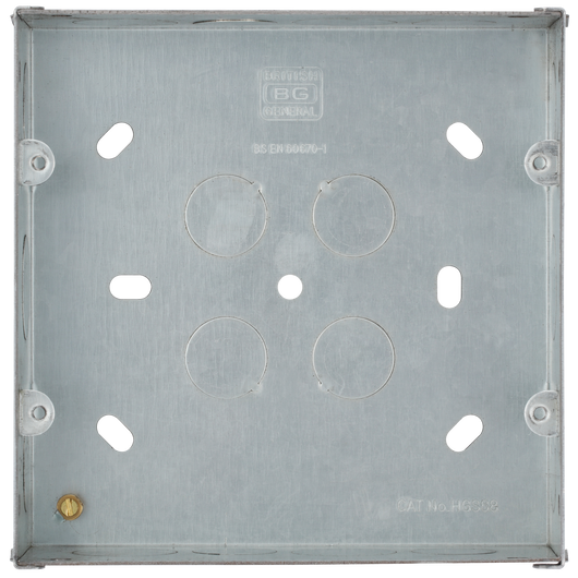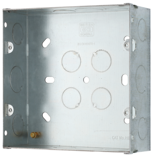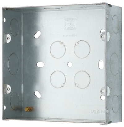 This flush fit metal mounting box from British General has a depth of 47mm, and is ideal for use when fitting 6-8 gang Grid configurations