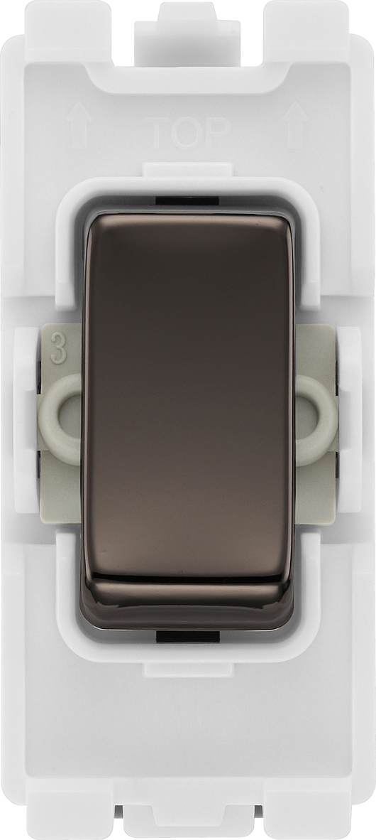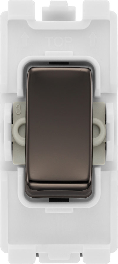 The BG Electrical Nexus Grid RBN12 is a black nickel single-pole 2-way switch module, rated at 20AX.
