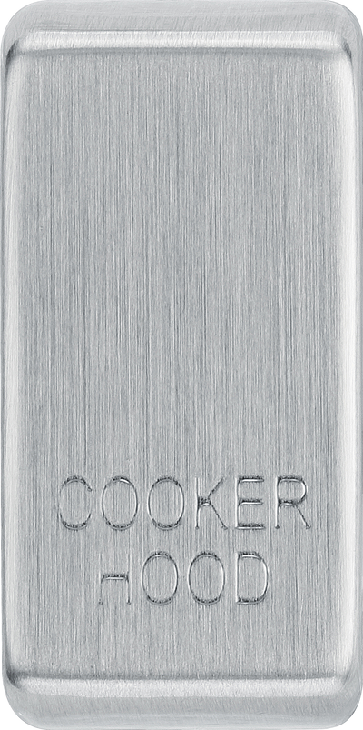 The BG Electrical Nexus Grid RRCHBS is a brushed stainless-steel replacement rocker switch embossed with COOKER HOOD.