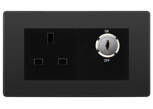 This key-controlled 13A double pole socket kit is custom-assembled using genuine BG components — a faceplate and a key switch module — to create a safe and reliable power solution. It’s ideal for areas where power access needs to be restricted, such as schools, offices, or workshops. The socket activates only when the key switch is turned on, preventing unauthorized use. Designed with a sleek Black Chrome Polycarbonate appearance and smooth edges, this unit combines durability, safety, and a professional finish. Easy to install and built for dependable performance, it offers a smart solution for controlled power access.