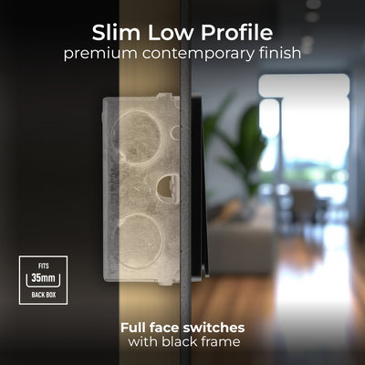 - Edge to edge switch for a larger touch point and contemporary appearance