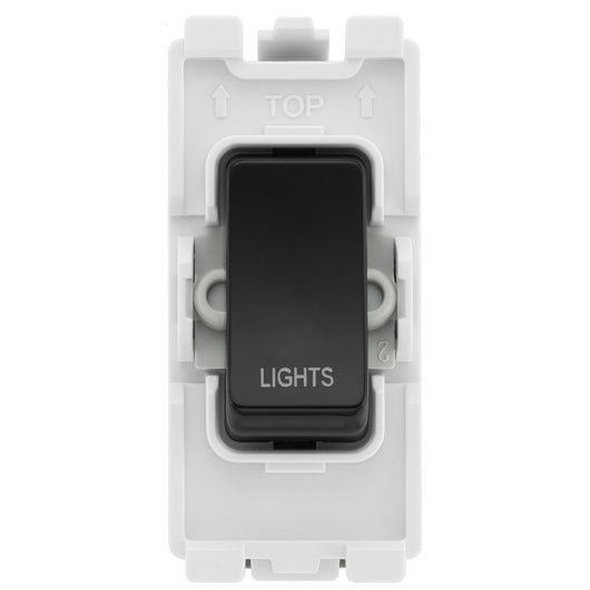 BG Evolve Black RRLTPCDB 20 Amp Double Pole Appliance Grid Switch Labelled Lights