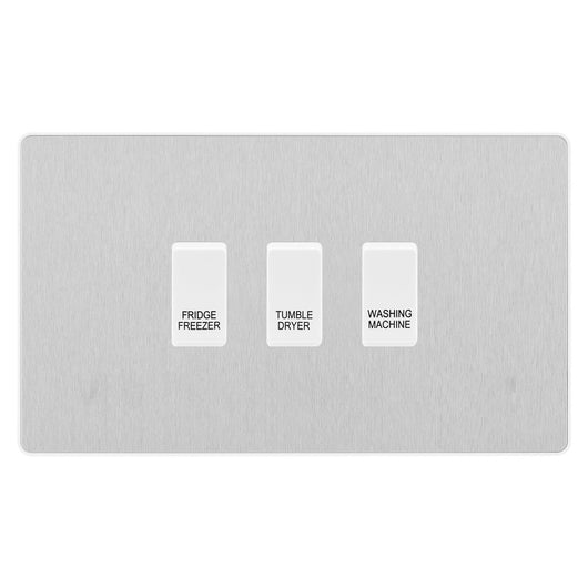 BG Evolve Brushed Steel Custom Appliance Grid Switch 3 Gang Screwless