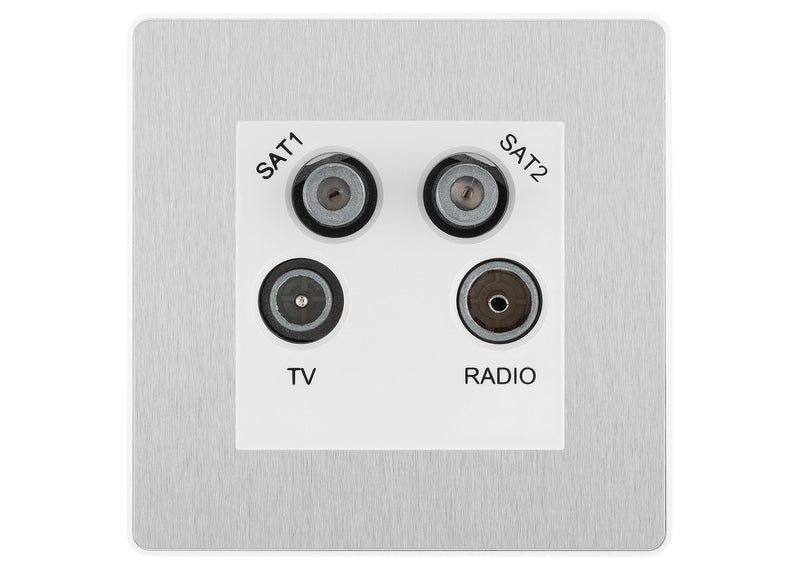 BG Evolve Brushed Steel TV/FM/2x SAT Quadplex Socket – White Insert