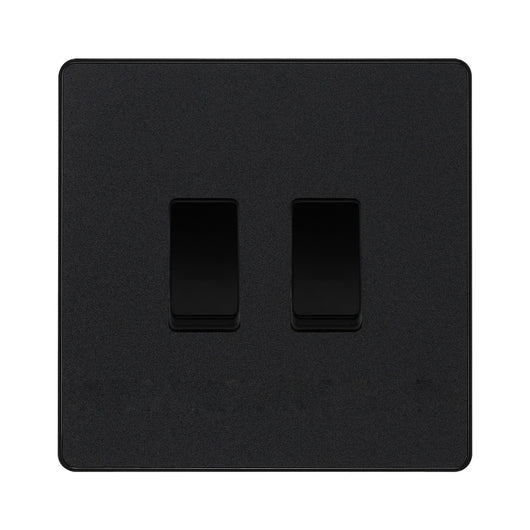 BG Evolve Matt Black 2 Gang Intermediate Custom Grid Light Switch