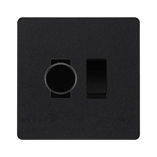 BG Evolve Matt Black 2 Gang Custom Grid Switch 1x LED Dimmer 1x 2 Way