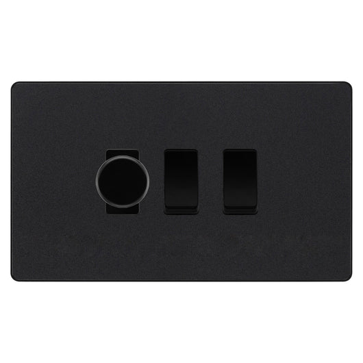 BG Evolve Matt Black 3 Gang Custom Grid Switch 1x LED Dimmer 2x 2 Way Switch