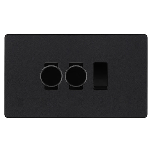 BG Evolve Matt Black 3 Gang Custom Grid Switch 2x LED Dimmer 1x 2 Way Switch