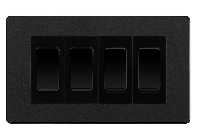 BG Evolve Matt Black 4-Gang Light Switch 1x 2-Way + 3x Intermediate – Black Inserts