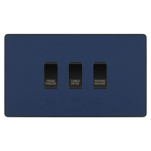 BG Evolve Matt Blue Custom Appliance Grid Switch 3 Gang Screwless