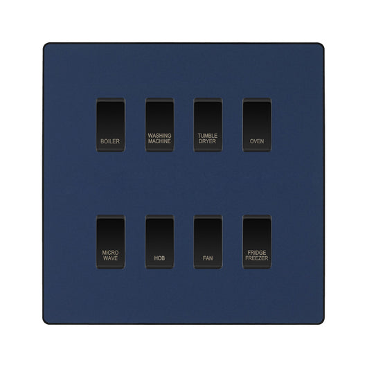 BG Evolve Matt Blue Custom Appliance Grid Switch 8 Gang Screwless