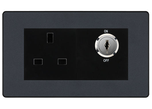 BG Evolve Matt Grey 13A Double Pole Key Controlled Socket – Black Inserts