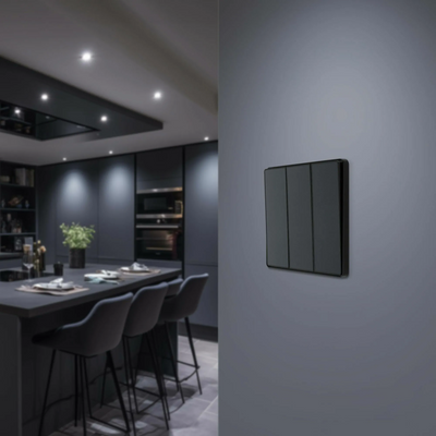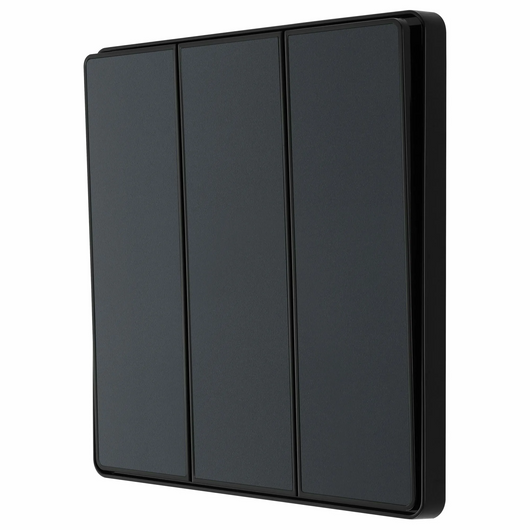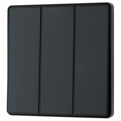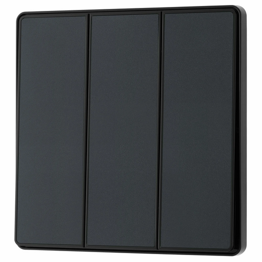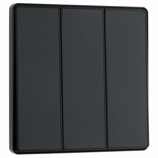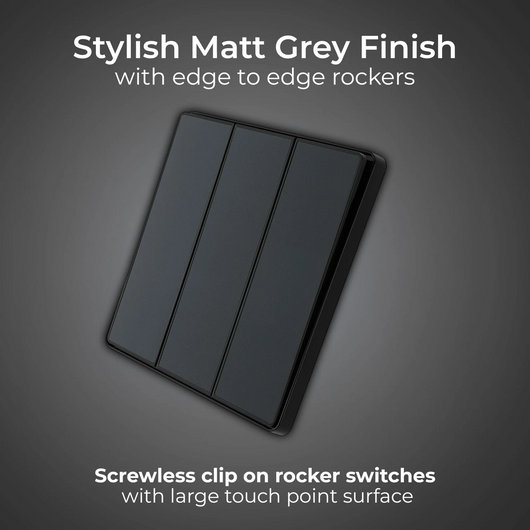This BG Evolve Matt Grey 3 Gang 2-Way 20A Edge to Edge Rocker Light Switch will operate one light in a room. The 2-way switching allows a second switch to be added to the circuit to operate the same light from another location (e.g. at the top and bottom of the stairs). This switch has edge to edge rockers and a low profile screwless flat plate that clips on and off, making it ideal for modern interiors.
