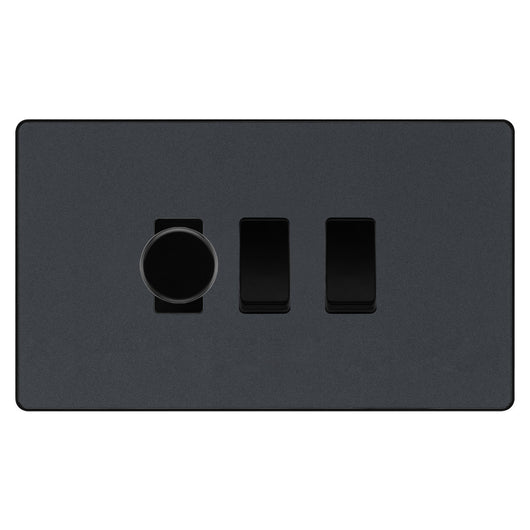 BG Evolve Matt Grey 3 Gang Custom Grid Switch 1x LED Dimmer 2x 2 Way Switch