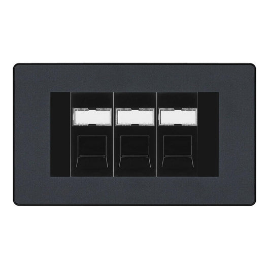BG Evolve Matt Grey 3 Gang RJ45 Cat6 Data Socket Outlet Black Inserts