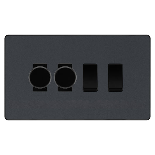 BG Evolve Matt Grey 4 Gang Custom Grid Switch 2x LED Dimmer 2x 2 Way Switch