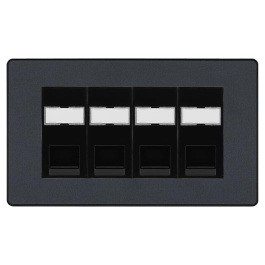 BG Evolve Matt Grey 4 Gang RJ45 Cat5e Data Socket Black Inserts