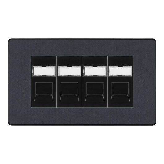 BG Evolve Matt Grey 4 Gang RJ45 Cat6 Data Socket Outlet Black Inserts