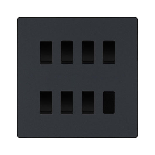 BG Evolve Matt Grey 7 Gang Intermediate Custom Grid Light Switch with Back Box Included