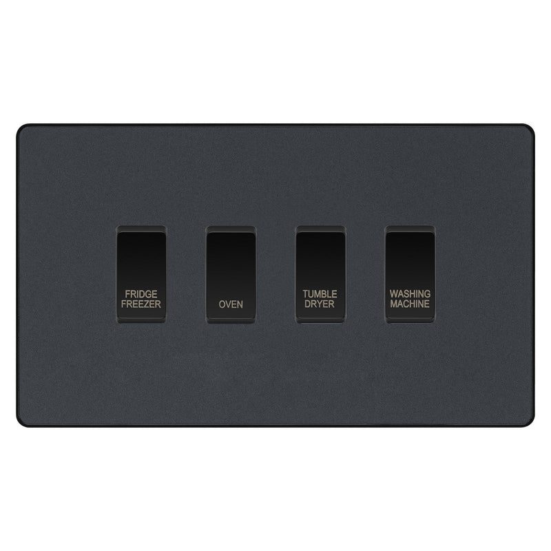 BG Evolve Matt Grey Custom Appliance Grid Switch 4 Gang Screwless