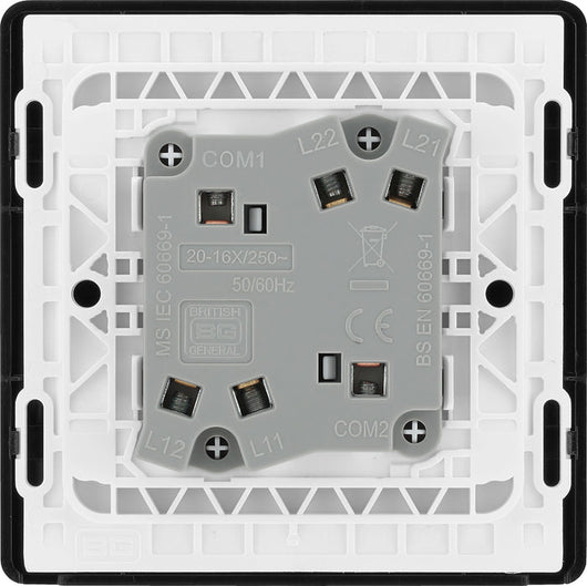 BG Evolve PCDBC42B Black Chrome 2 Gang 20A 16AX 2 Way Light Switch - Black Insert