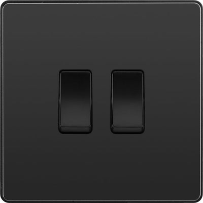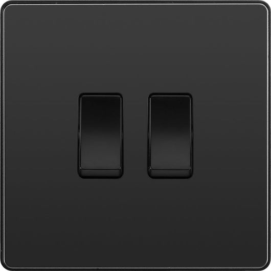 Black Chrome Evolve 2 Gang 20A 16AX 2 Way Light Switch - Black Insert