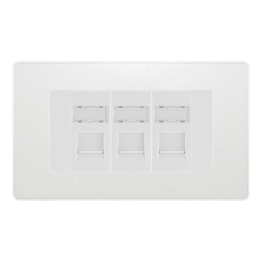 BG Evolve Pearlescent White 3 Gang RJ45 Cat6 Data Socket Outlet White Inserts