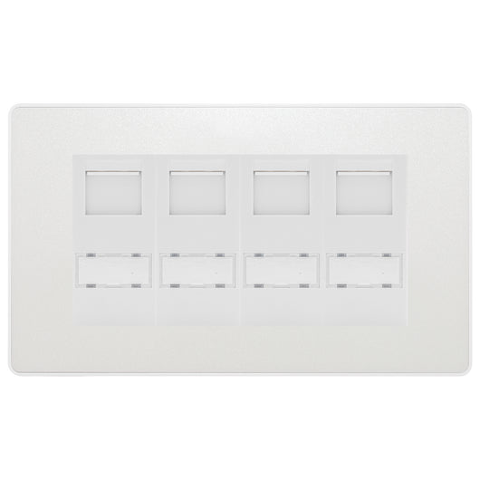 BG Evolve Pearlescent White 4 Gang RJ45 Cat6 Data Socket White Inserts